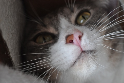 PHOTO:袋や箱が大好きなGoo(1才)。大きくなりすぎて箱から出れません(笑)