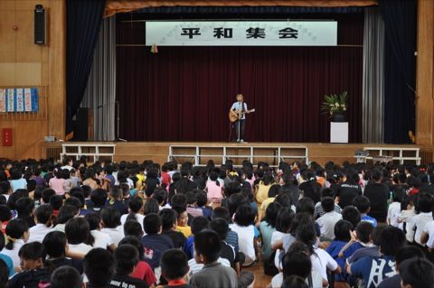 今日は、糸満市立西崎小学校「平和集会」にサプライズ出演してきました!!西崎小学校では、明日の慰霊の日に向けて全校生徒で平和学習を体験し「HEIWAの鐘」を歌いました。