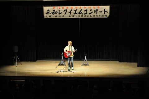 先日、行われた「糸満市平和祈念祭・平和レクイエムコンサート」で西崎小学校の合唱部がHEIWAの鐘を歌ってくれました。その縁で先生から今日の平和集会への出演依頼を頂き急遽、サプライズコンサートが実現したわけです。