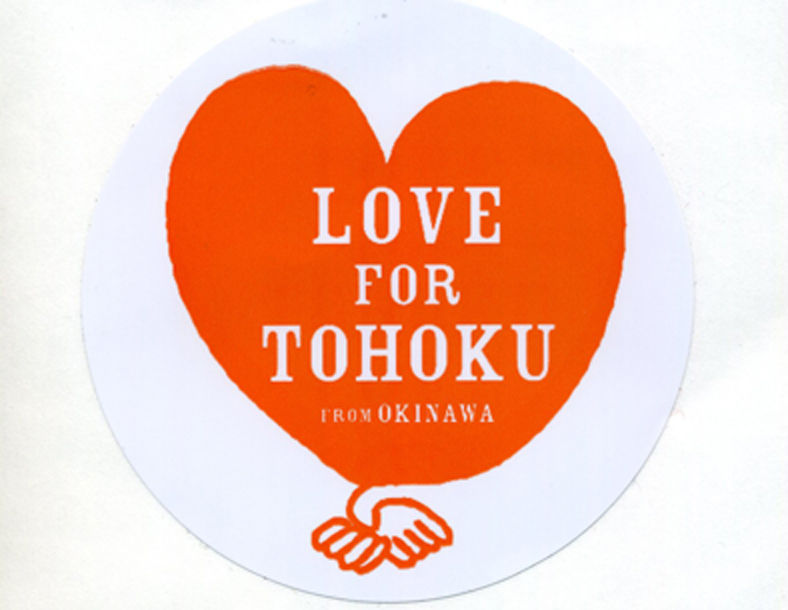 お買い上げ頂いた方には震災復興ステッカーをプレゼントします。ステッカー代金各1枚100円(Tシャツ代金に含む)を義援金として寄付させて頂きます。