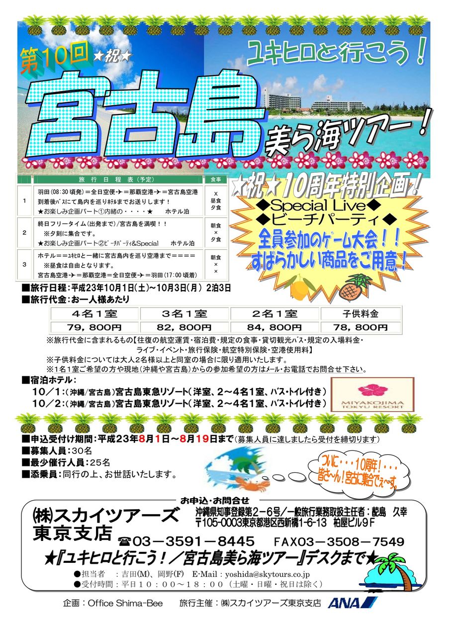 10月1日(土)〜3日(月) 2泊3日今年で10回目を迎える沖縄ツアー「ユキヒロと行こう宮古島美ら海ツアー」