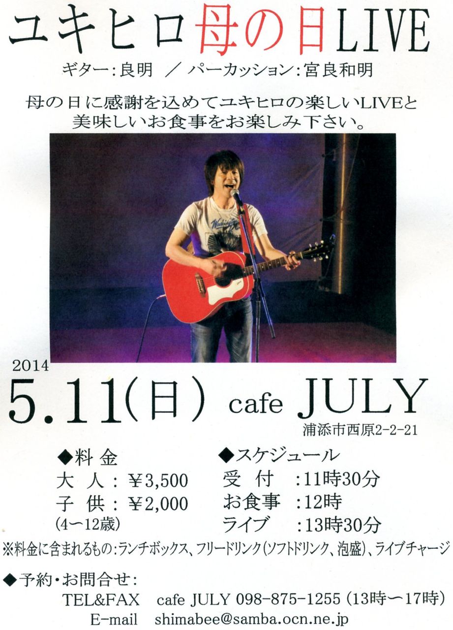 e131e8de.jpg5月11日(日)「ユキヒロ 母の日 LIVE」は、予約のお客様で満席となりました。どうもありがとうございます。