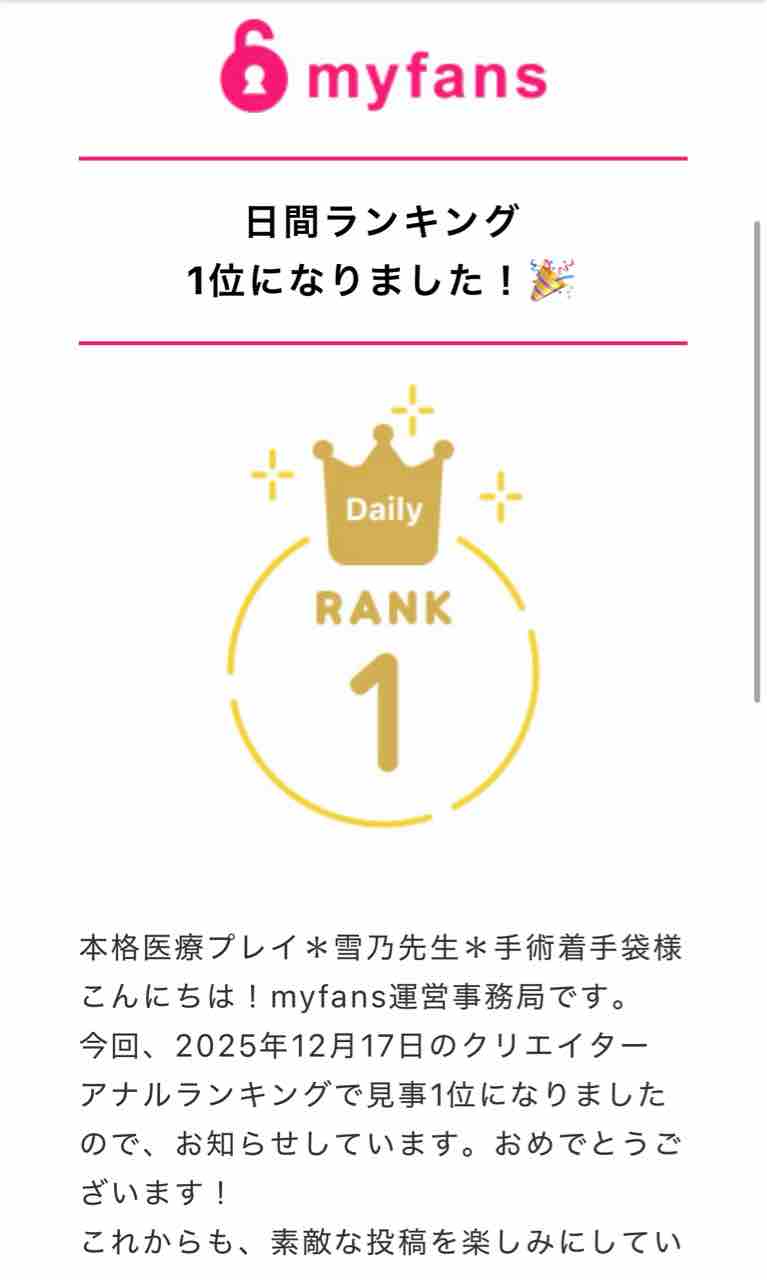 デイリーランキング アナル部門1位を2回とれたわ。