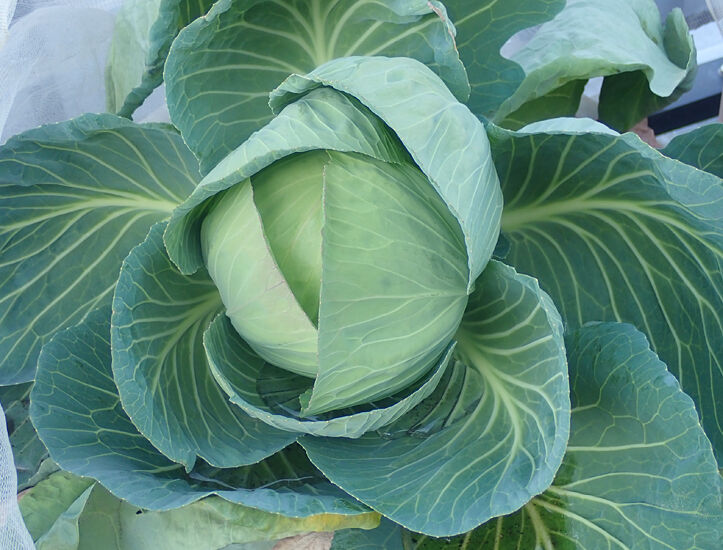 新年収穫初め! 大玉キャベツ 東京晩生ネギ苗 エンドウ類の苗
