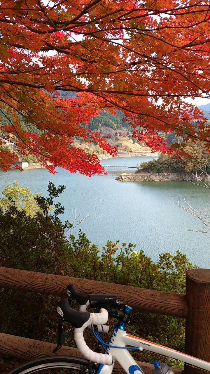 火の谷温泉のあたりまで下った後、君ヶ野ダムへ登ってきました。この湖畔も紅葉真っ盛り。