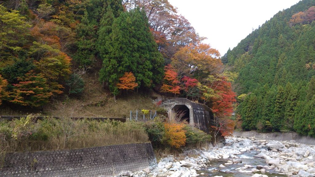 峠の下りでは、体力が戻ってくるので撮影する余裕も。JR名松線の不通区間です。この辺りは寒暖の差が激しく、紅葉も鮮やかでキレイです。先週替えたばかりのスマホで撮影方法がよく理解できませんが、結構キレイに撮れました。