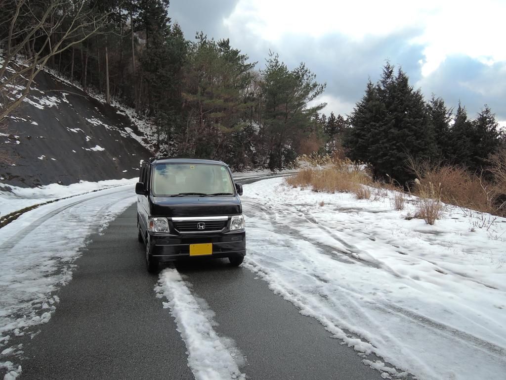普段寒い峠なので雪はもっと寒いだろうと思ったらそれほどでもありませんでした。凍った路面を探しては四駆の挙動を確かめて遊んだり。。。