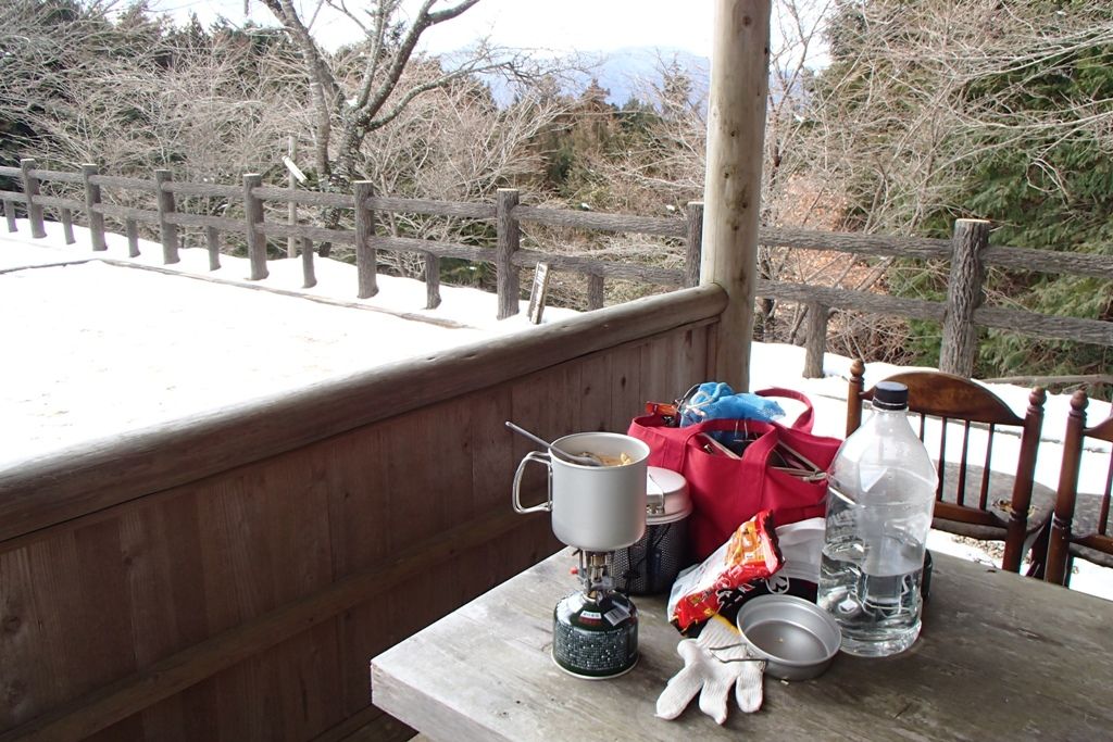 峠の東屋へ到着。ここで遅めの昼ごはん。