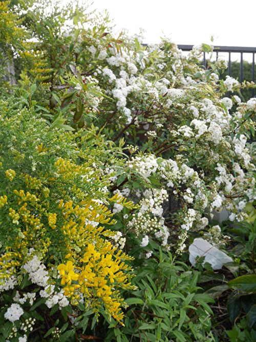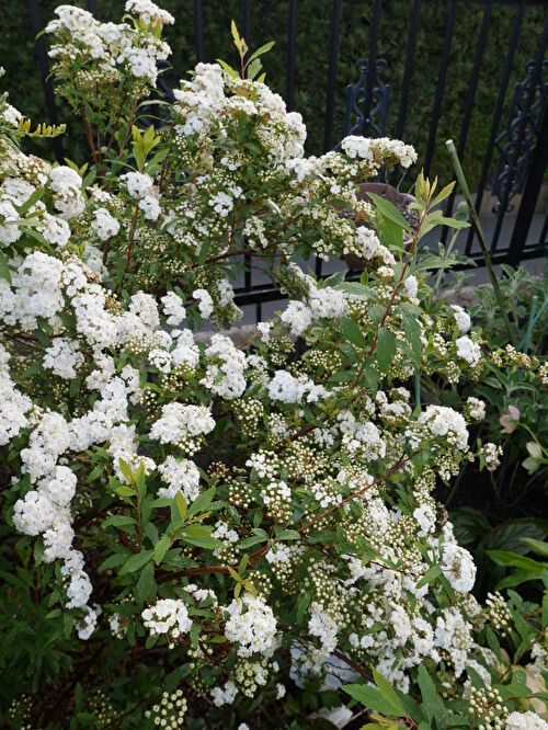 ユキヤナギと枝垂れ桜
