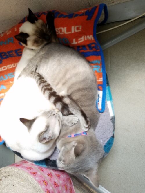 うまい具合に2にゃんの間に入り込めました