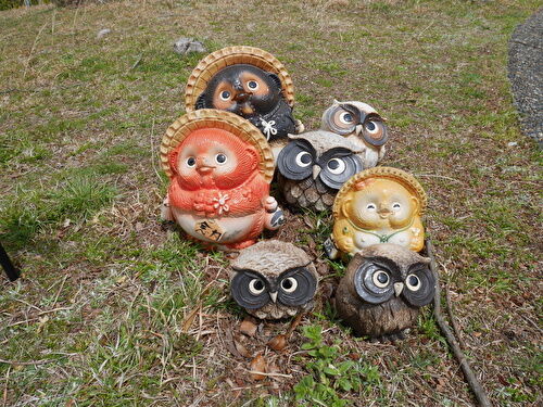 こちらは、可愛いタヌキとフクロウ