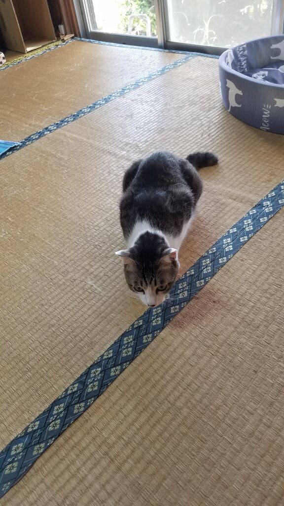 暑いので、フローリングで