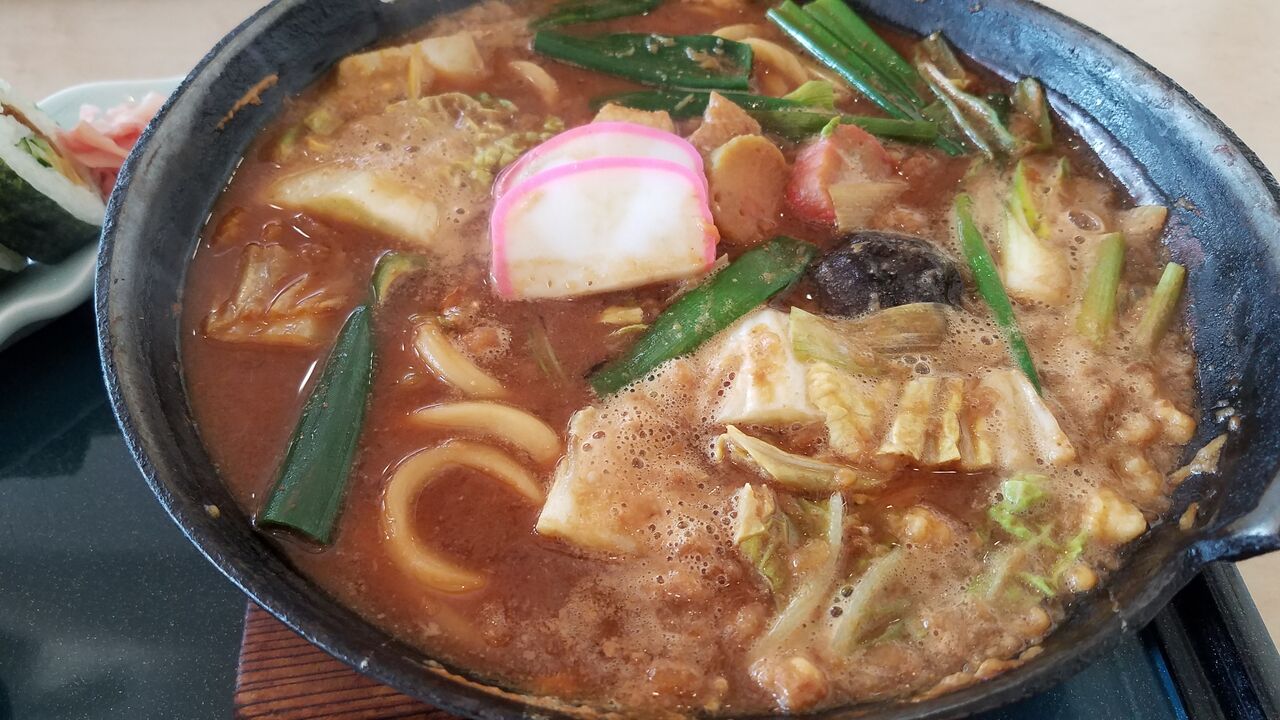 鉄鍋でぐつぐつ煮込まれた味噌煮込み