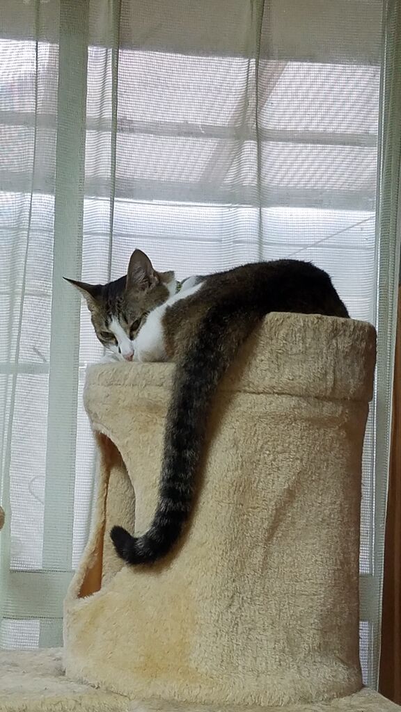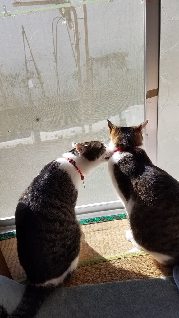 凛音のすらっと長い尻尾が羨ましいみたい😅