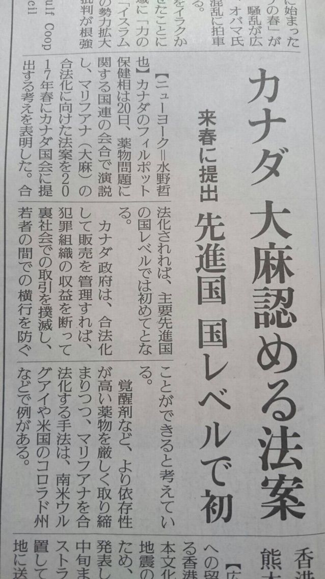 来年春、カナダはマリファナが合法になります。