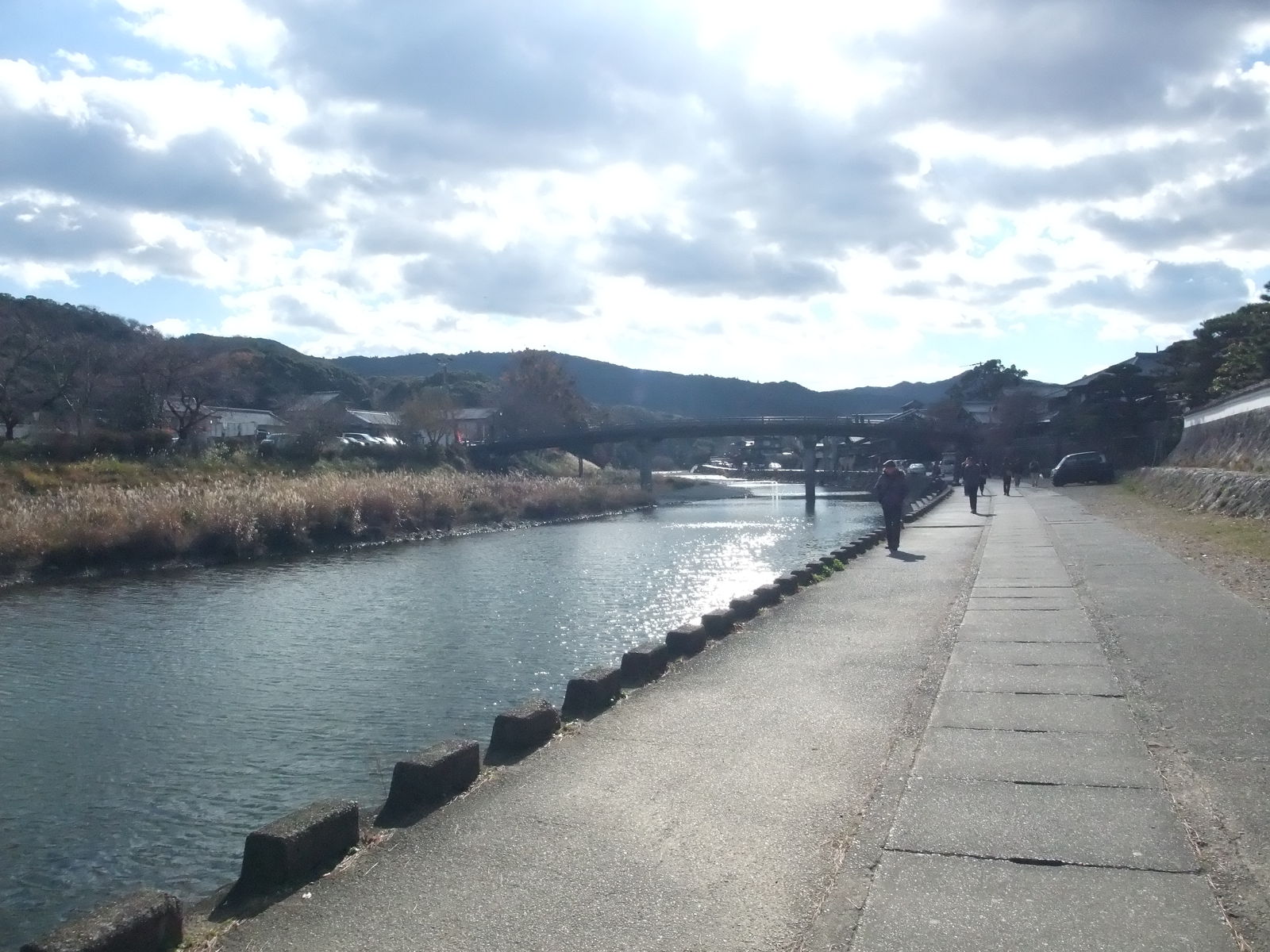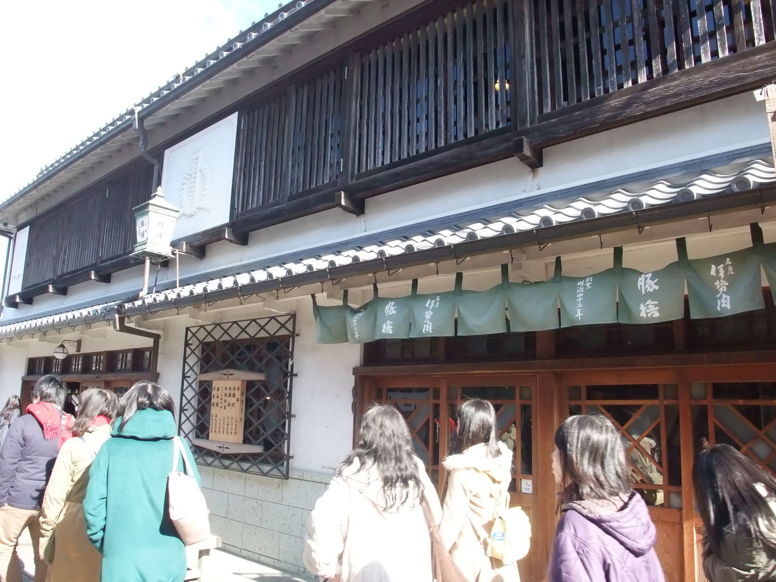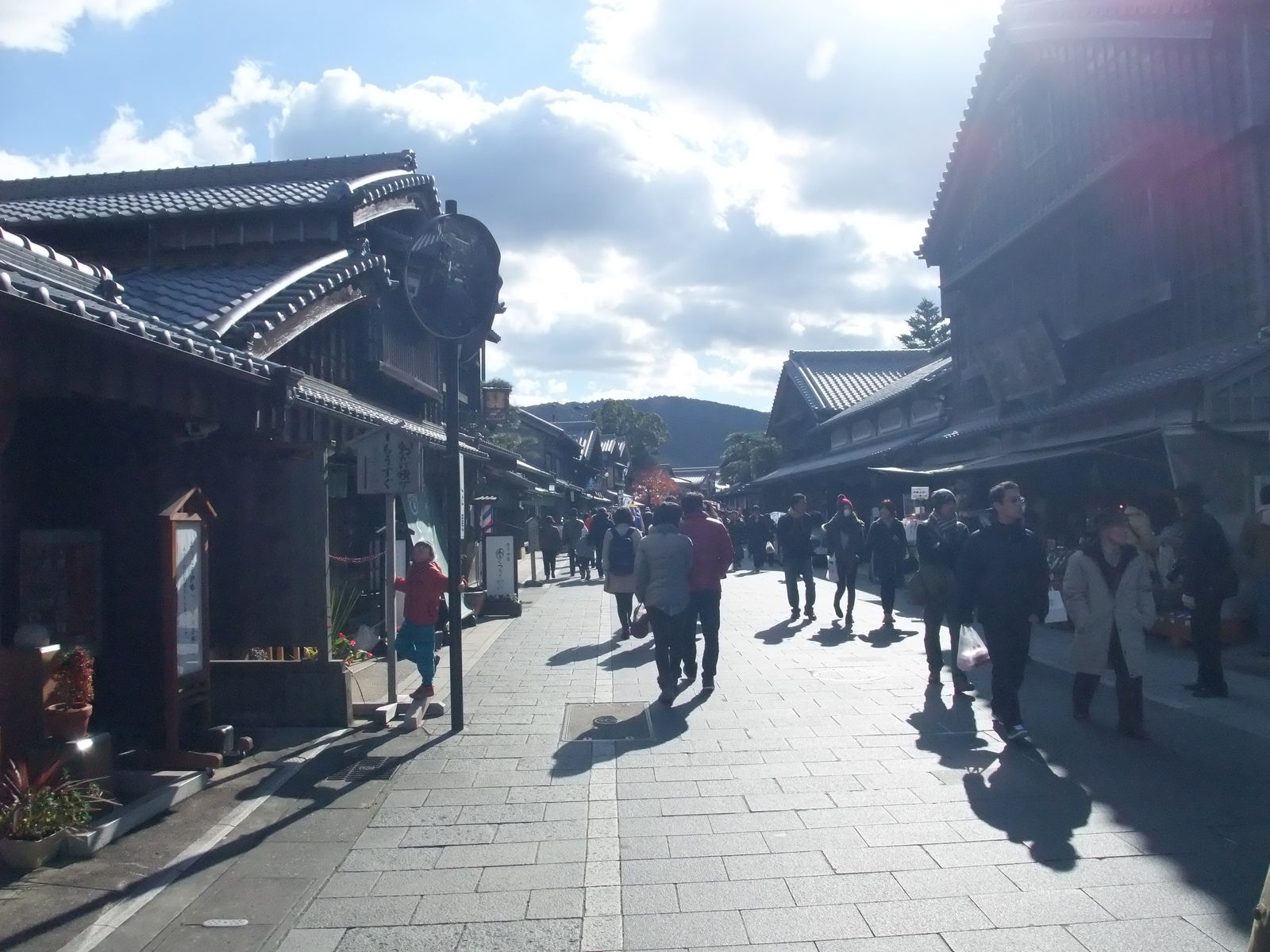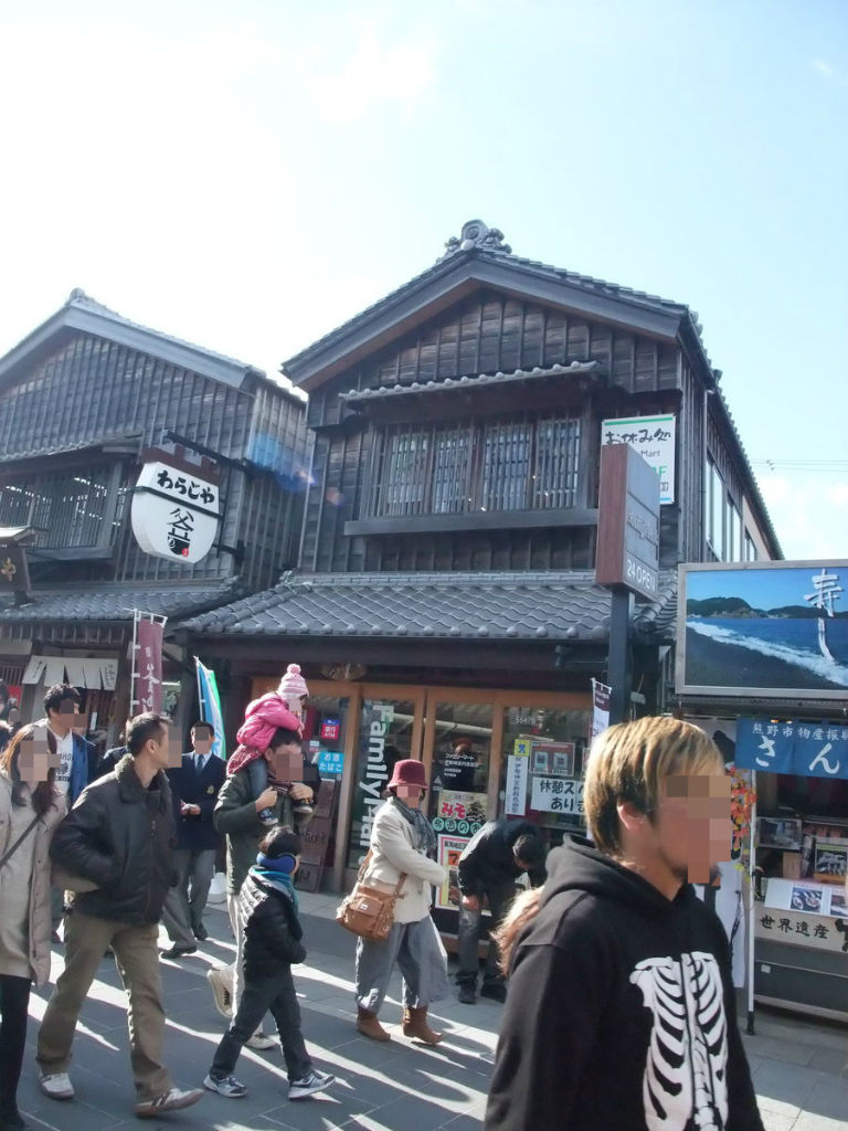 さすがに寒かったので川遊び等もせず(やったらそもそもひんしゅく買いますし)、川沿いに進んで右折し、きれいな白壁の間を抜け、おはらい町通りに出る。