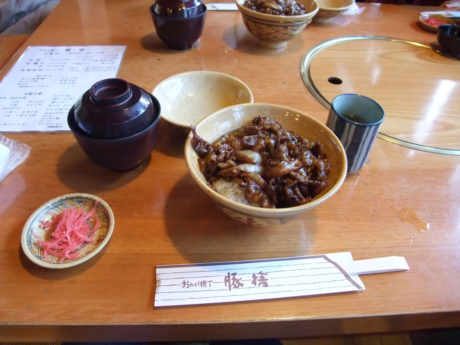 案内されたのは2階のお座敷席。牛丼がうまいとのことで牛丼を注文。