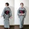 雨なのでポリの縞の単衣着物に