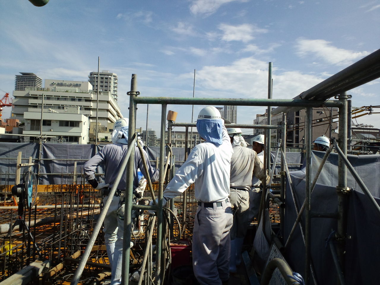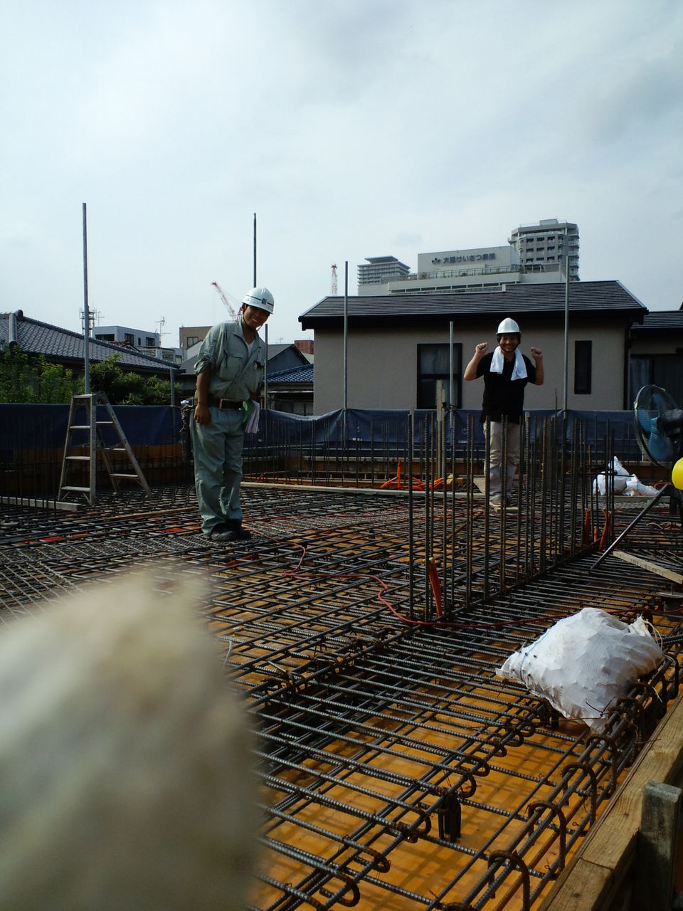 厳しい残暑の中、最終回のコンクリート打設三階壁と屋上スラブ