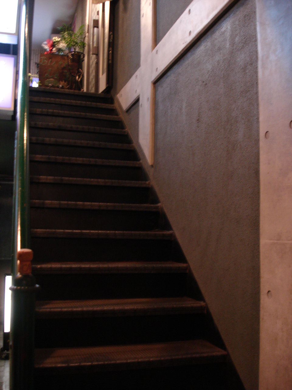 上がったら右手がお店の入り口です。(路地の入り口にある目印の看板↑)