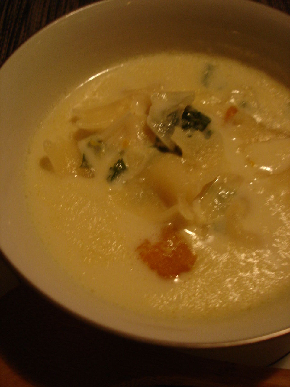 「白身魚と野菜とパスタの豆乳スープ」☆☆☆
