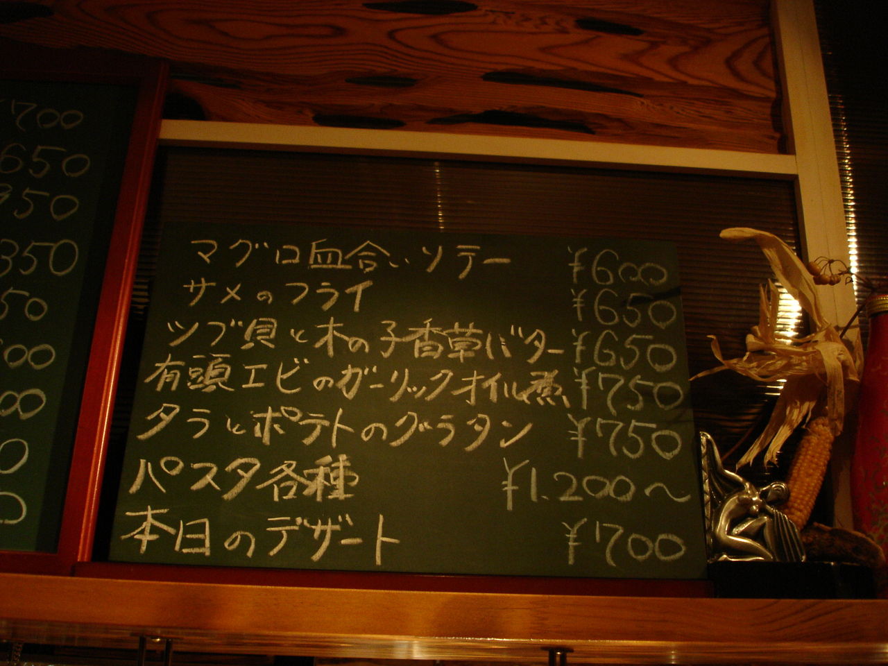 グランドメニューはなく、黒板メニューです。ちょっと見えにくいですが、ビストロメニュー色々♪