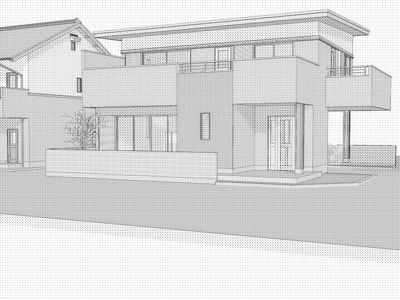 点線内をクリック。 点線内に誘導する感じ。 もうすこし中間のコマがほしい。 道、車、人、ビル など、CGモデルからの加工画像で置き換えたいのだけど。