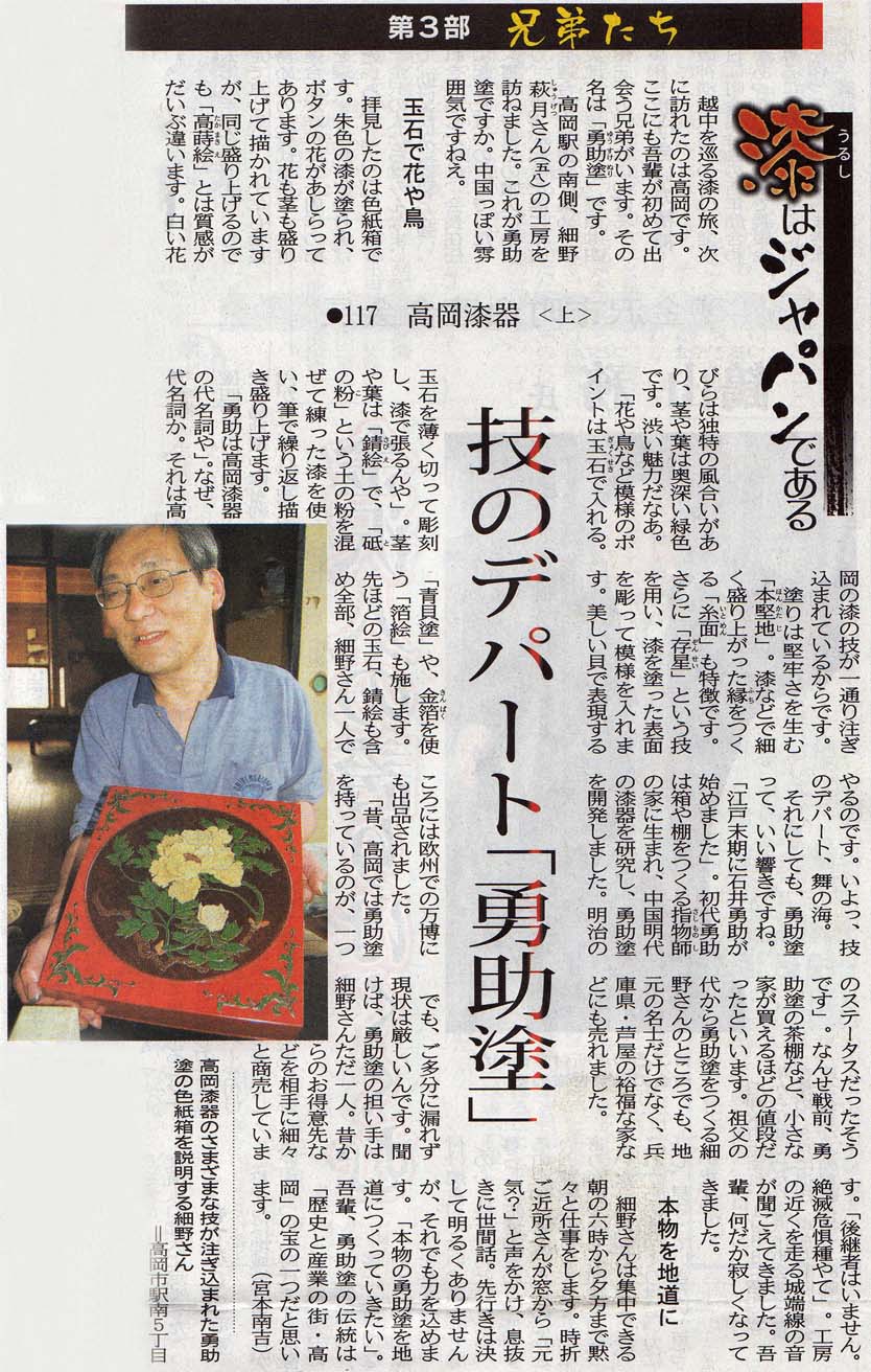 『いっちゃん☆特集 - 高岡の伝統工芸 勇助塗 -』