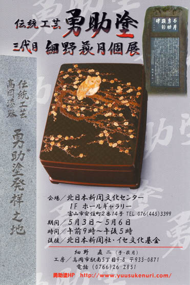 勇助塗職人三代目 細野萩月 個展のお知らせ