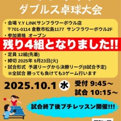 ミックスダブルス卓球大会 申込頂きました!!
