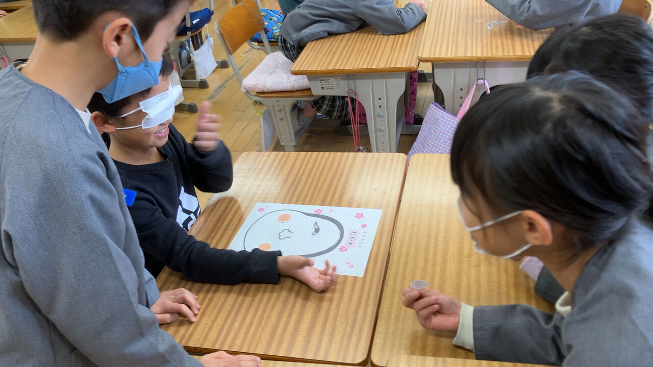 新年初めての英語の授業でした。この日は英語で福笑いをするというのを授業直前に聞きました。顔のパーツの「Eye」「Ear」「Cheek」「Mouth」「Eyebrow」「Nose」などを英語で言って渡すのと、それを動かすときに「Up」「Down」「Right」「Left」と言っていい位置にもって行かせることを順番にしました。でもまさかアメリカ人の先生が福笑いをするとは思いませんでした。楽しく全員が福笑いをして授業を終えました。英語の授業もあと2回。満足させて終わりたいと思います。
