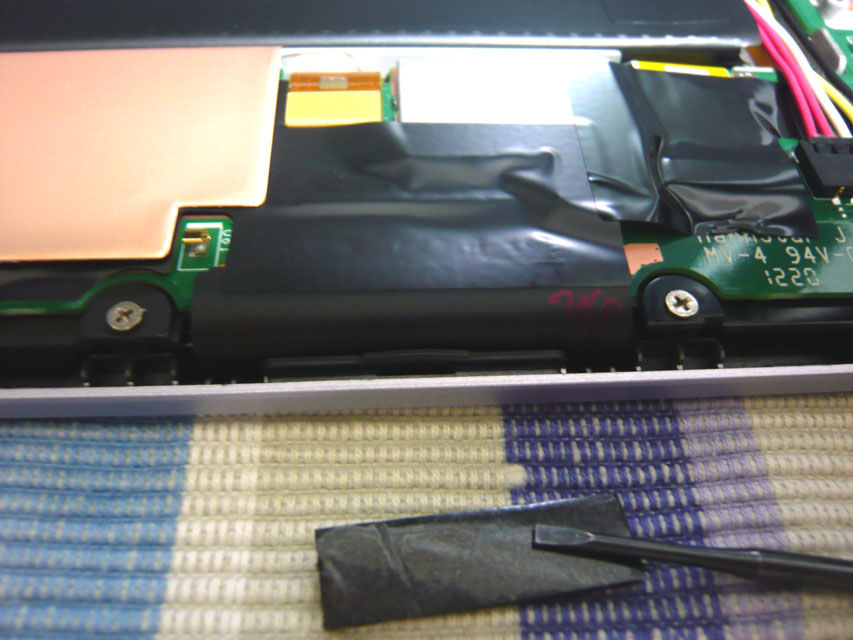 あちこちにリアカバーのアンテナと接続する端子が見えますね。