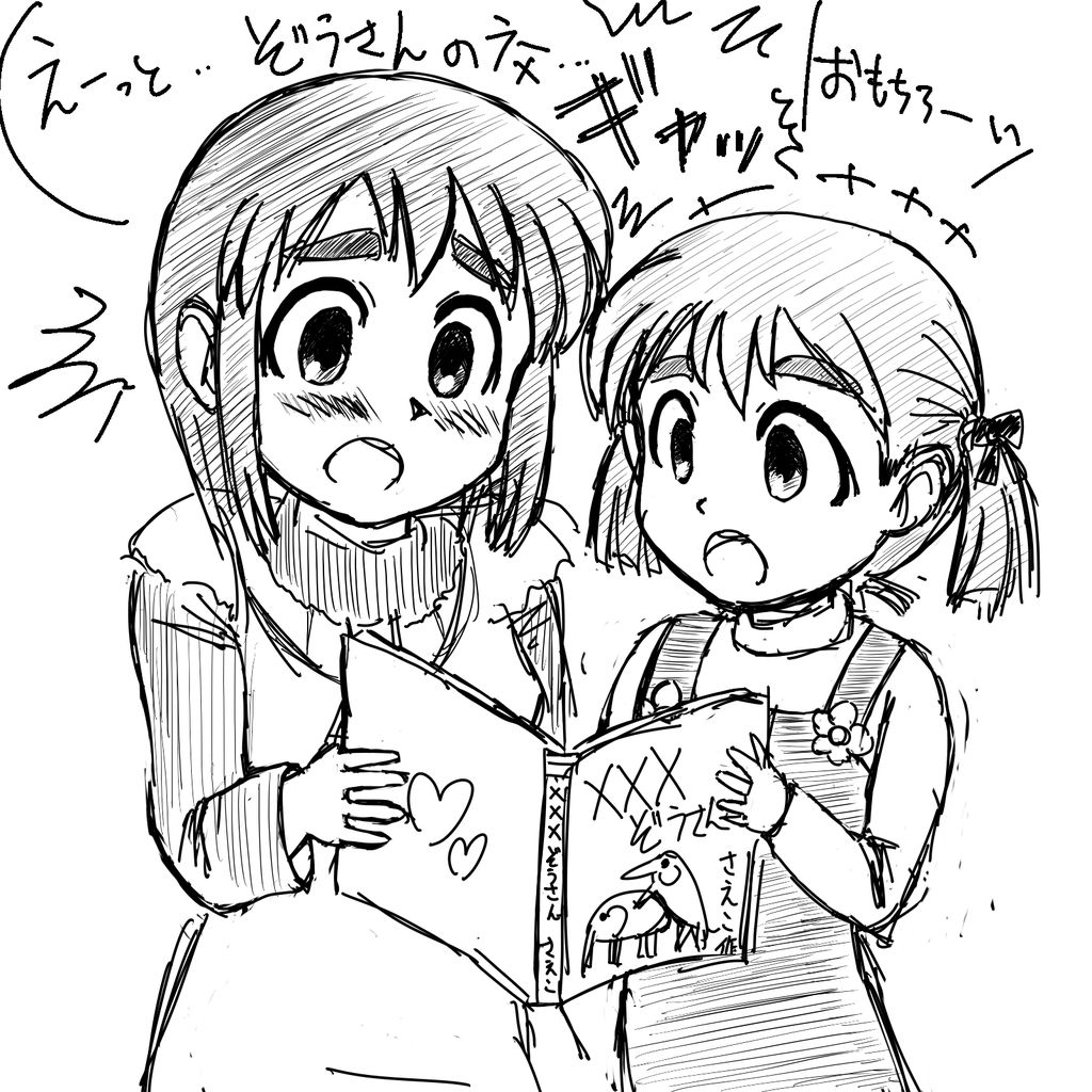 「ママの新刊を読む吉岡さんとちびゆきちゃん」