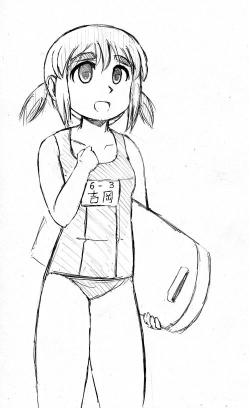 雪が降っている中でスク水か!!と思うのですが、ネーム帳に使っているノートに夏ごろ描いた吉岡さんが眠っていたので載せてみました。上尾のさいたま水上公園には温水プールがあるからいいんです。真冬のスク水もあり得なくはない。