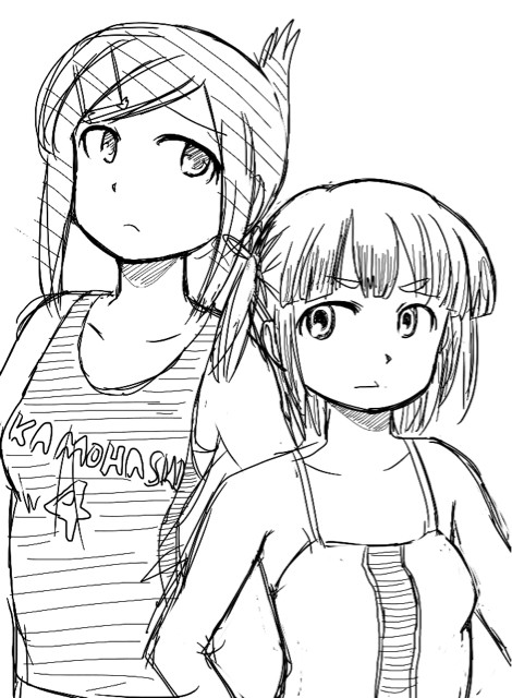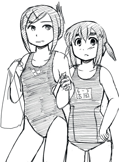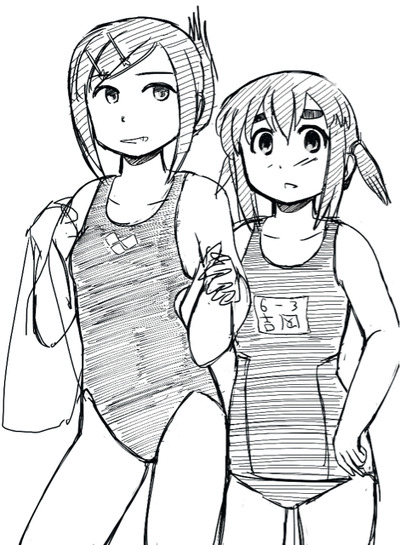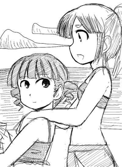 翻ってのりお先生のブログを見ると、海に行っている感じの絵がちらほら無きにしも非ずです。中でも素晴らしいのは海岸でカニに水着を挟まれて宮下さんにしがみつく吉岡さんの絵ですが、残念ながらこれは今はリンクが切れて辿れなくなっています。