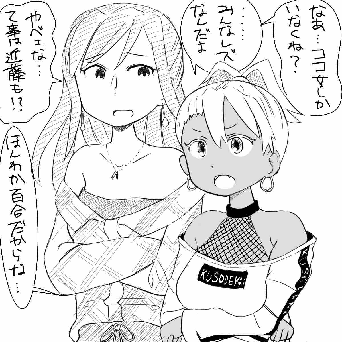 近ドゥーを買いに来る不倶戴天の中年オヤジを手ぐすね引いて待ち構えるアミ・ランのギャルコンビ。しかし会場を回遊するのは女のみ。まさか近ドゥーの青い性を買い漁るのは同性…?でもホンワカ百合まんがだから無きにしも非ずだし…的な。