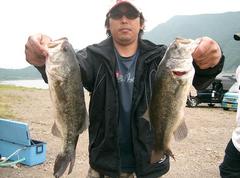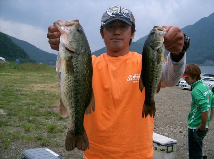 【優勝】の熊木さんは、溶岩帯の水深3〜5mを・スモラバにポークのトレーラーとスプリットショットにポークと二通りのリグでリミットを揃え、去年の相模湖戦のお立ち台に続き、見事優勝しました。