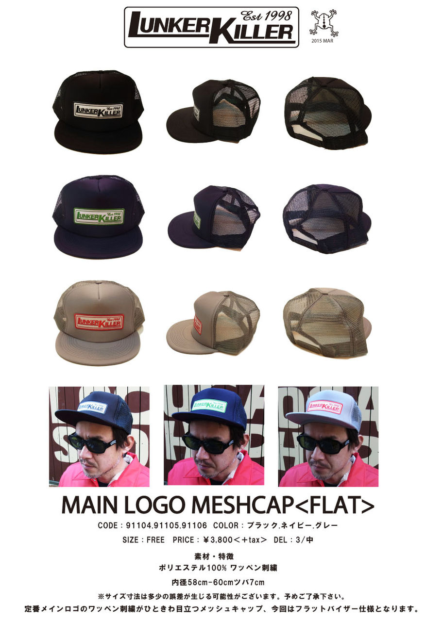 定番メインロゴのワッペン刺繍がひときわ目立つメッシュキャップ、今回はフラットバイザー仕様となります。
