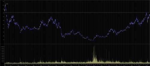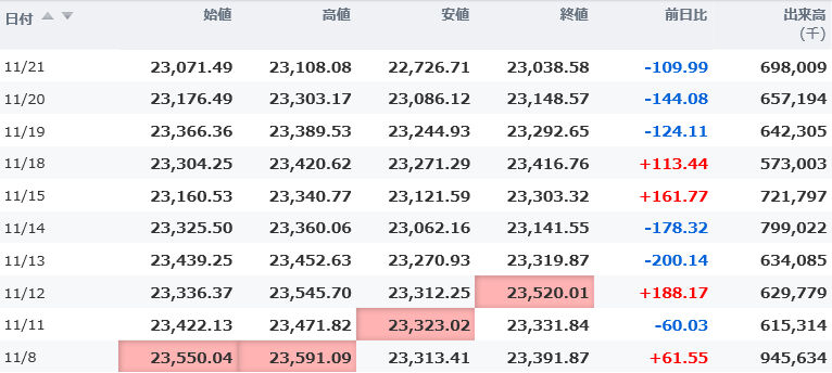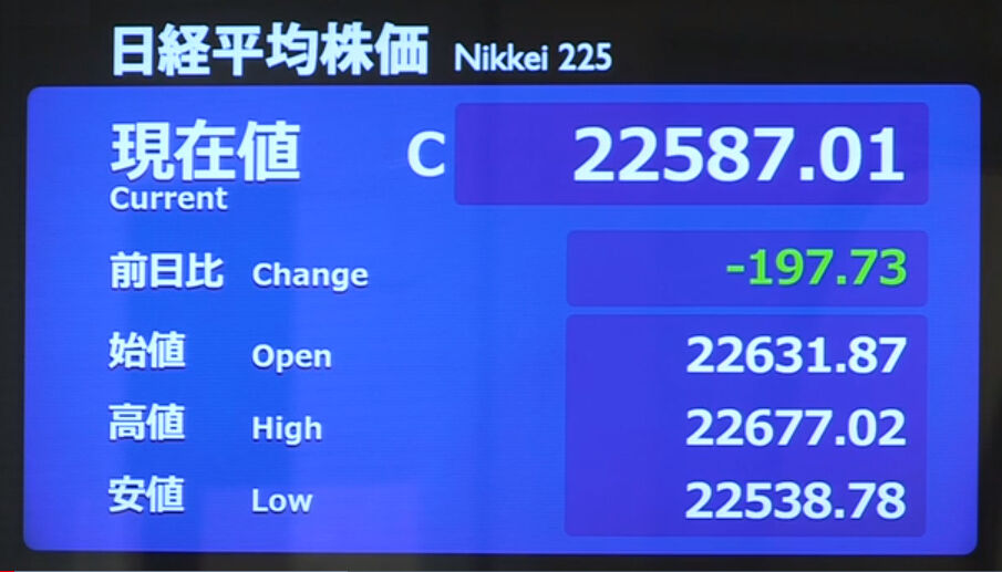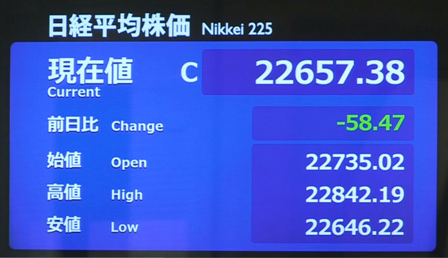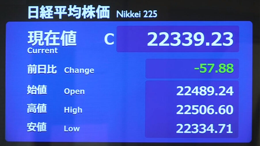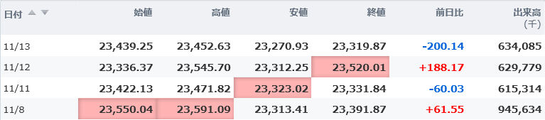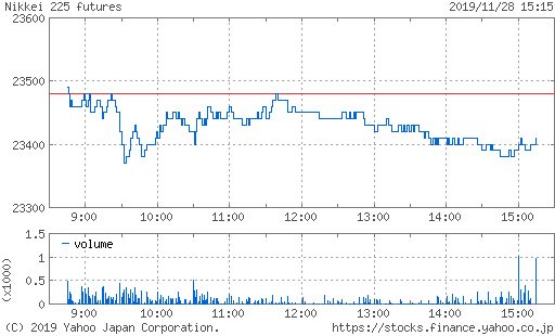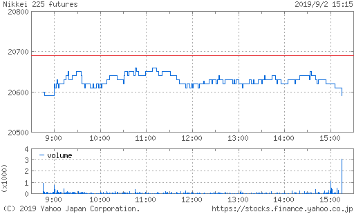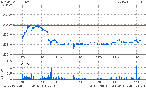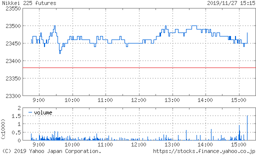 朝方の安値を割り込み一段安となるが、引けにかけては下げ渋り結局小幅高水準で取引を終了。