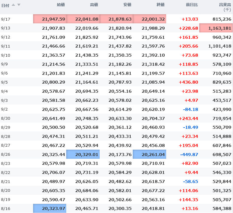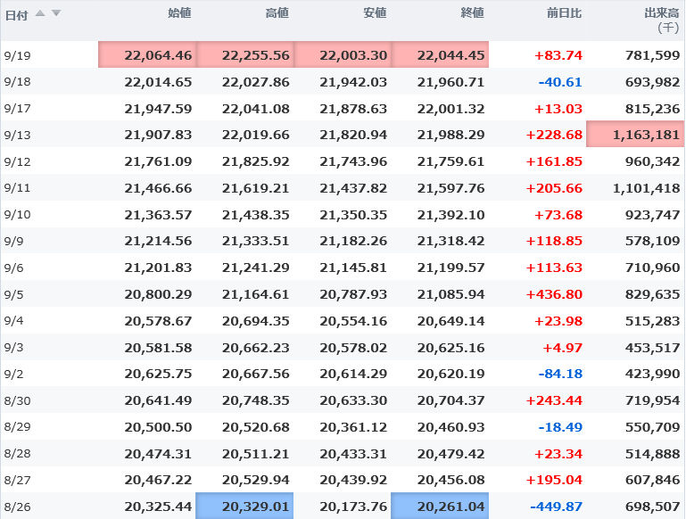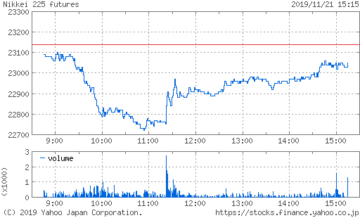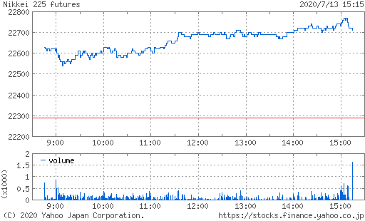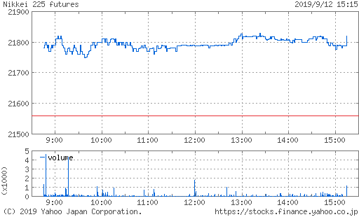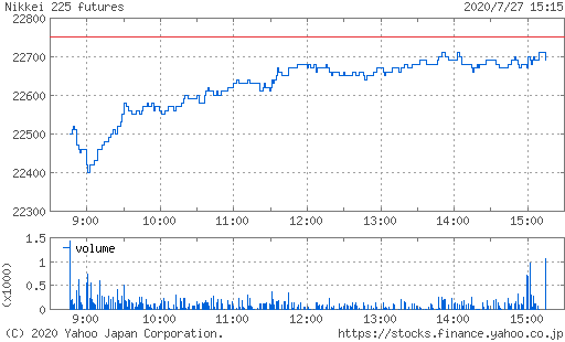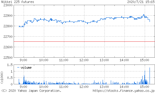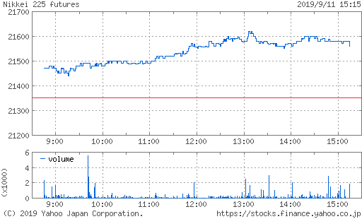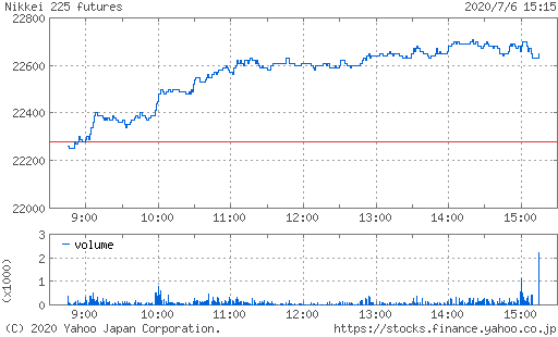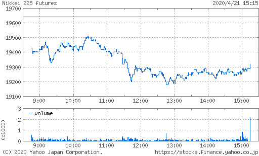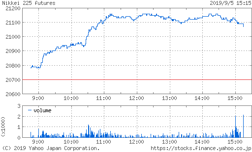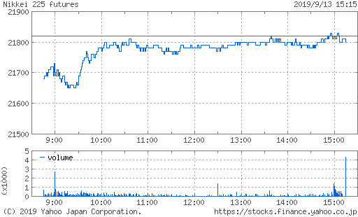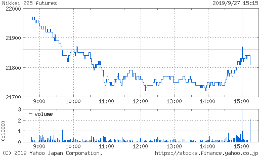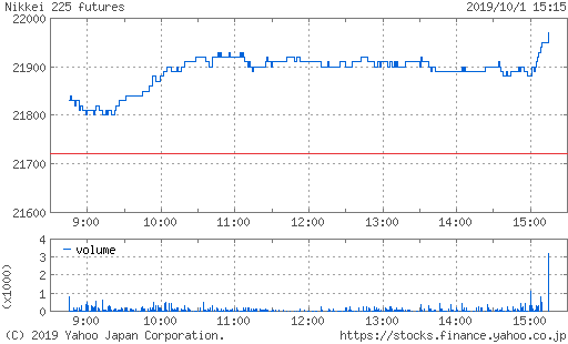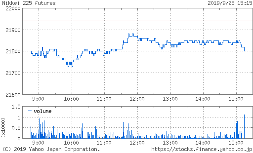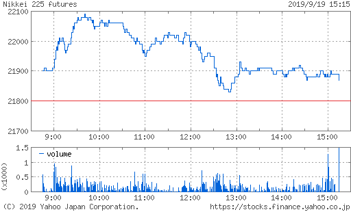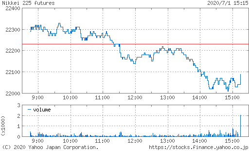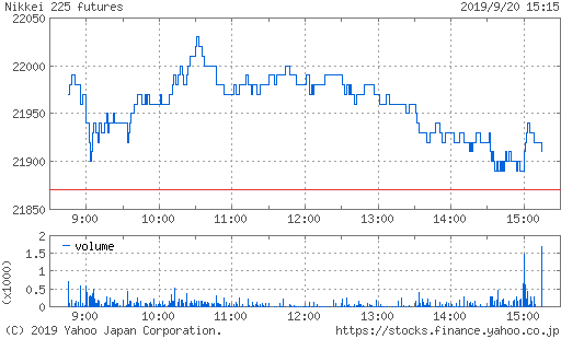 先物は110円GUで始まり、戻り売り一巡後上げ幅を急速に拡大。一時高値22,030円まで上げ幅を拡大するが、前日高値には及ばず、頭打ち。