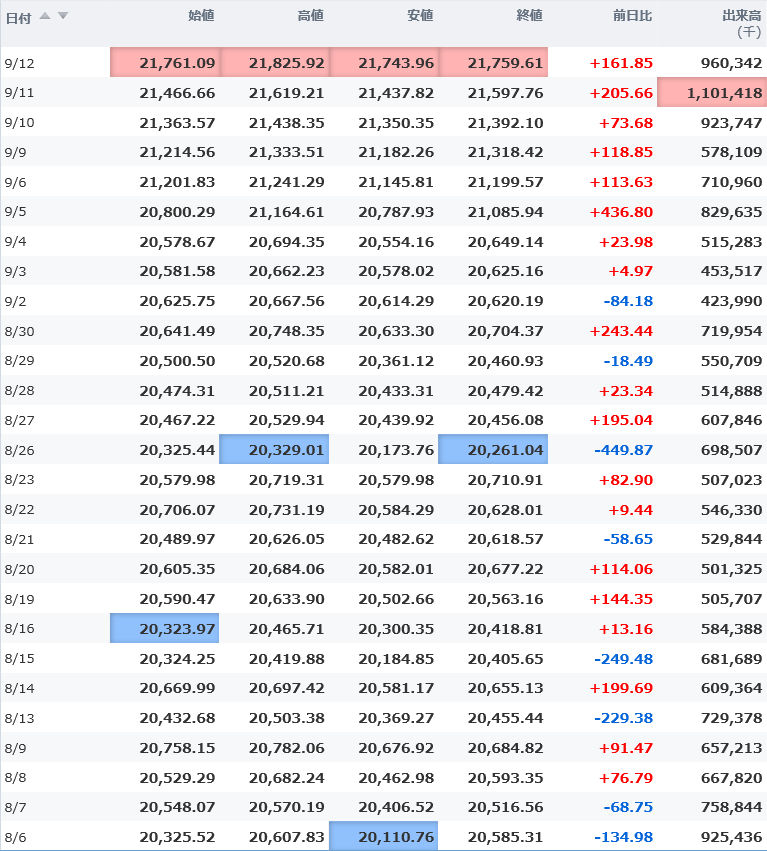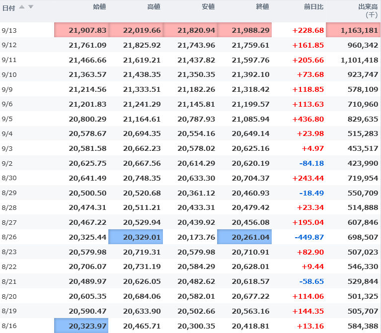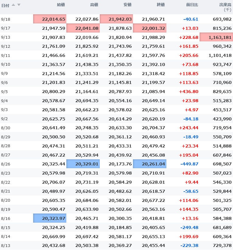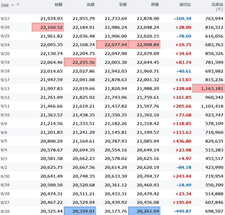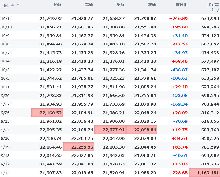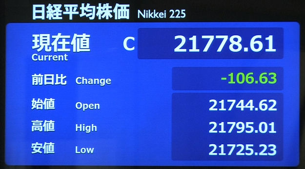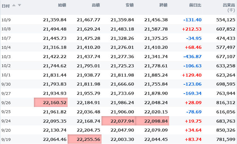 先物は110円GUで始まり、戻り売り一巡後上げ幅を急速に拡大。一時高値22,030円まで上げ幅を拡大するが、前日高値には及ばず、頭打ち。