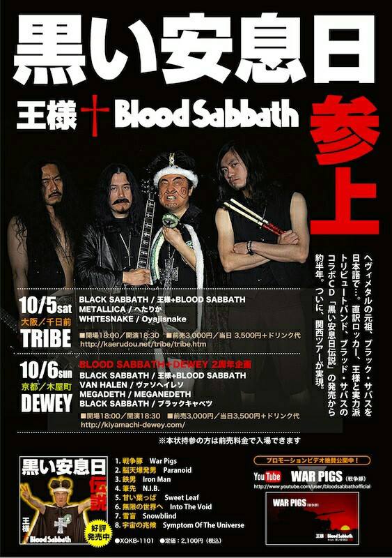 京都・木屋町DEWEYにかの「王様」がBlood Sabbathと共に降臨されるというので、Kei Maeda氏(オジキオズボーン、Krockark)を加えた新生ヴァソヘイレソでお迎えすることに相成りました。共演には盟友Meganedeth(メガネデス)もいるよ〜。