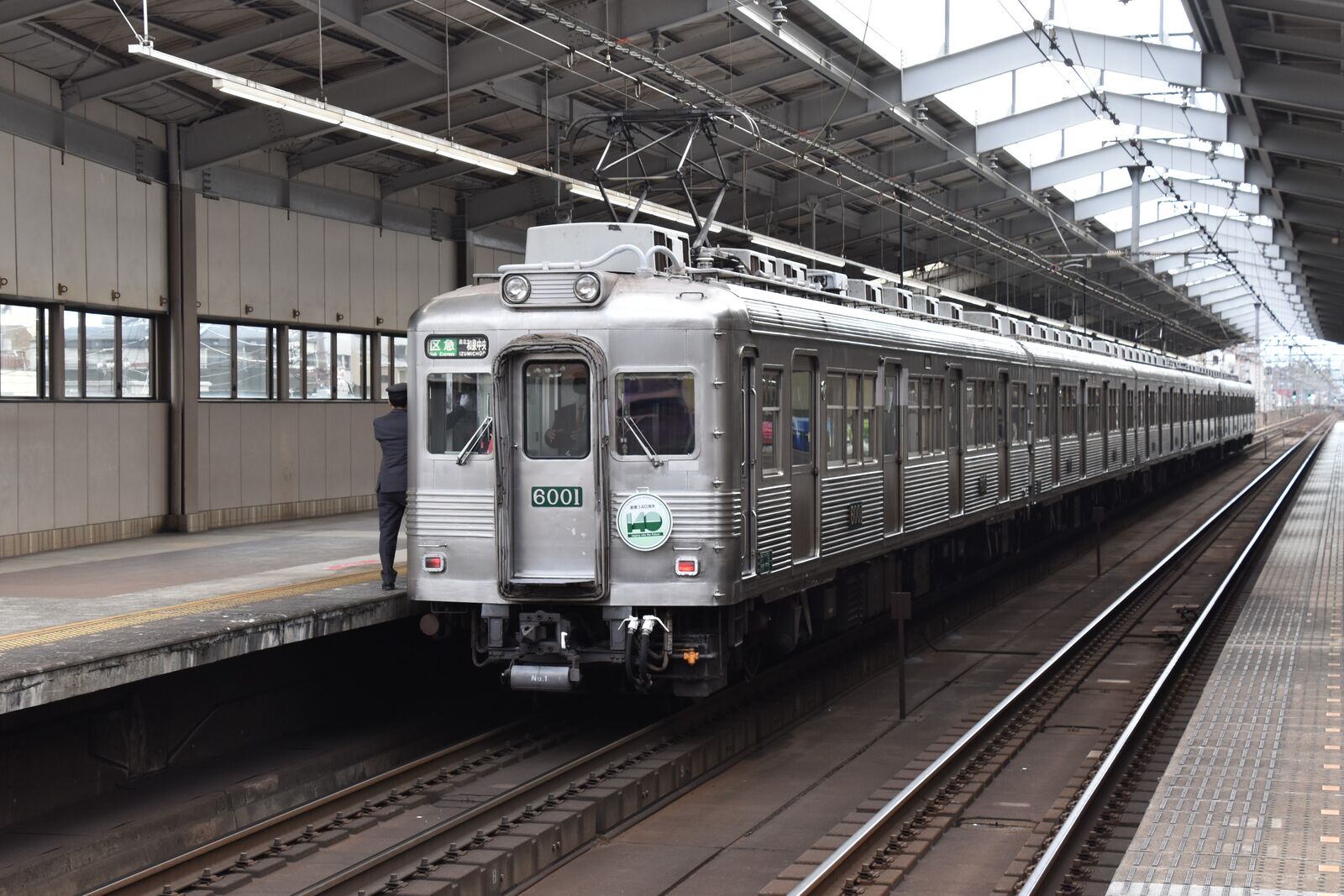 (写真)高野線を走る無塗装の6000系 天下茶屋にて