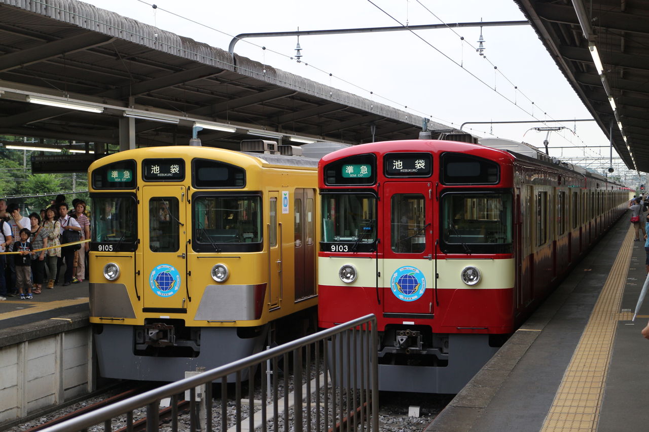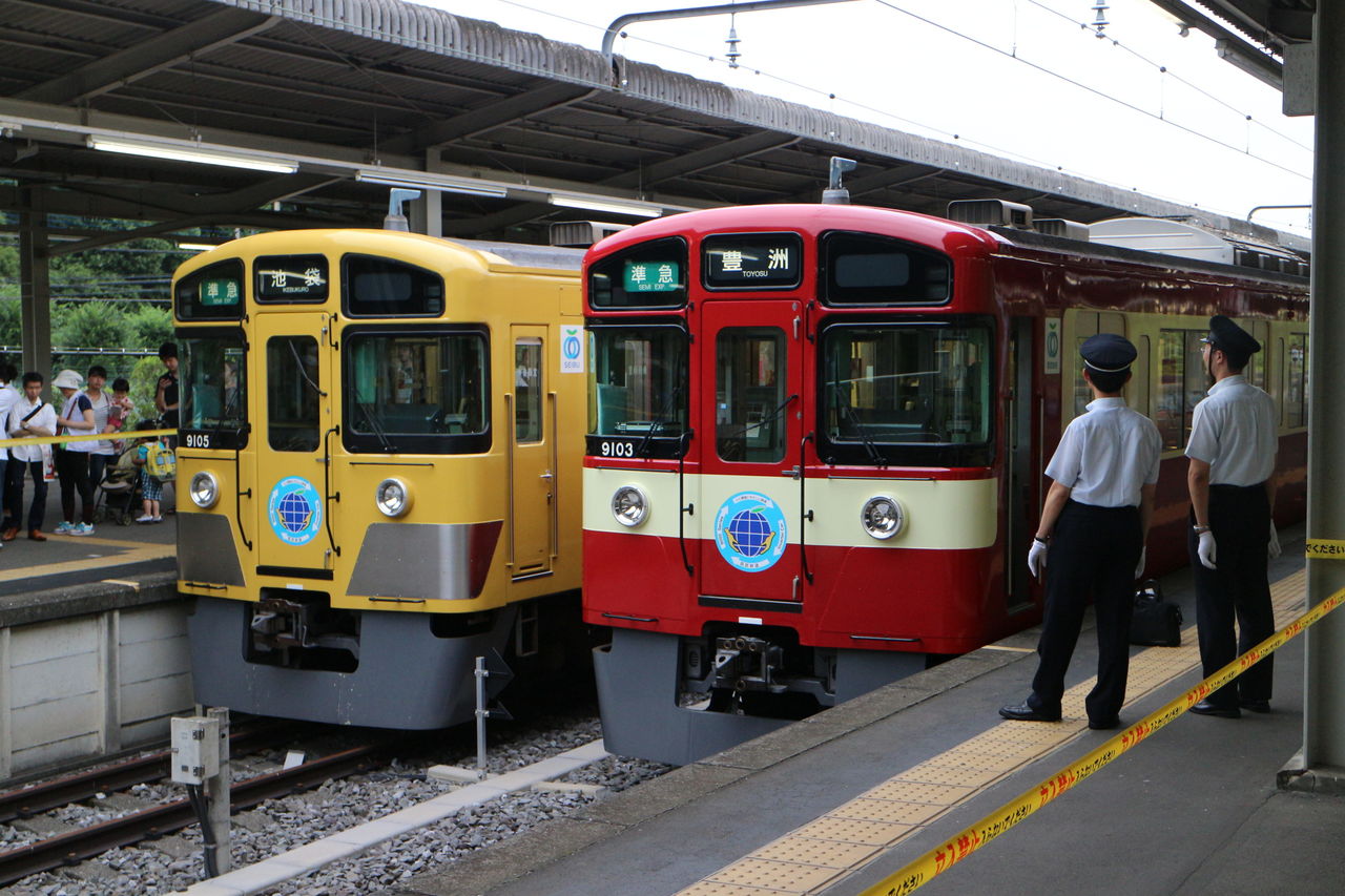 7月3連休の初日、京浜急行の幸せの黄色い電車とのコラボ企画として京急カラーとなった西武の幸せの赤い電車9000系9003Fがついにお披露目され、西武球場前駅で撮影会が開催されました。3連休とあって、鉄道ファンはもちろん、そのインパクト大の姿を一目見ようと、たくさんの親子連れが会場を訪れ、大盛況でした。西武鉄道始まって以来、西武の車両が他社のカラーリングとなって走るのはおそらく初めてではないでしょうか。それゆえ注目度は高く、報道関係の方々の姿も見受けられました。