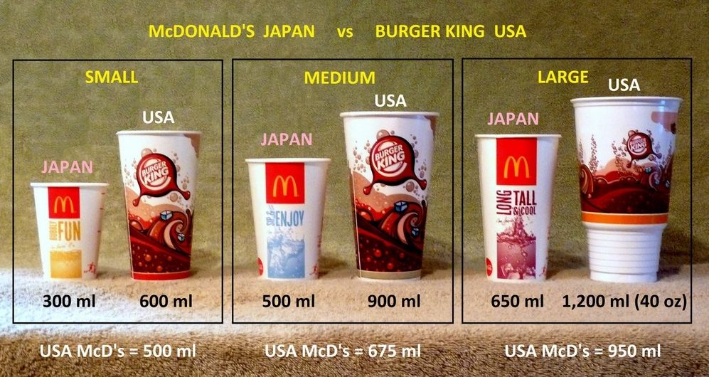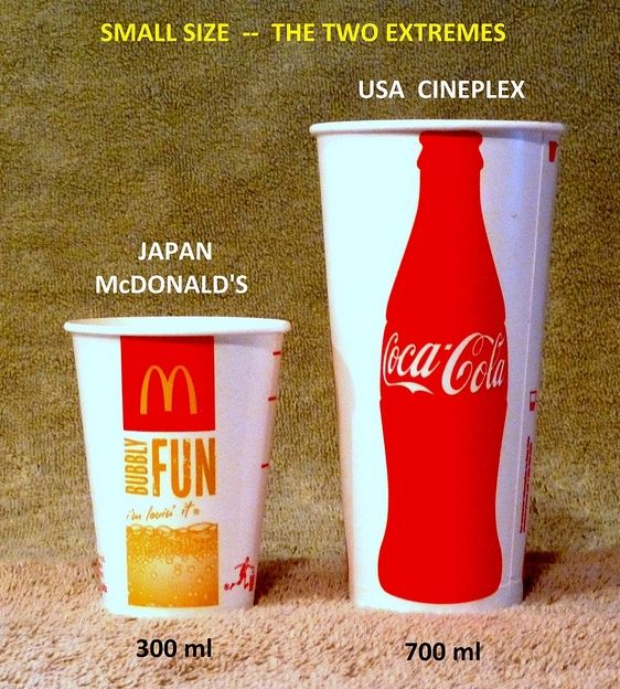 日本のマクドナルドとアメリカの映画館のドリンクサイズ比較