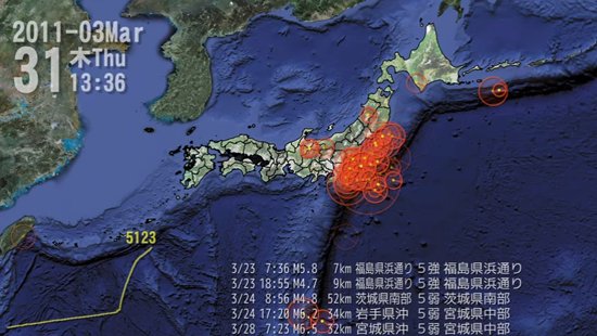 2011年度の地震分布図を可視化した動画の海外の反応です。