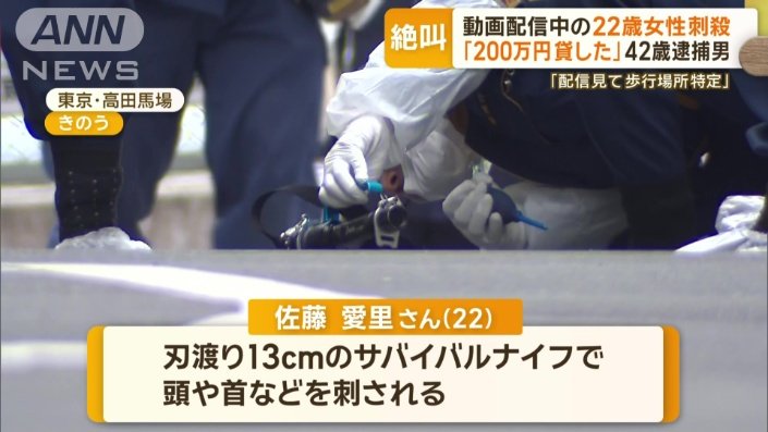 生配信中に22歳女性刺殺 配信サービス運営が追悼 現時点で「詳細の発信は差し控える」 投げ銭で人気